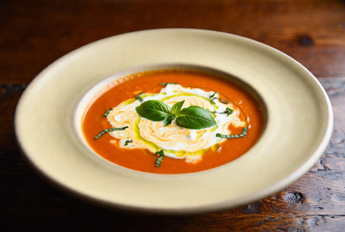 A rich, Mediterranean-style tomato soup thickened with creamy cheese instead of flour or sugar.
